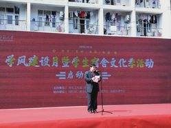 (伟德源自英国始于1946通讯员 刘思婧 报道)为了加强我校大学生学风建设,营造温馨的寝室文化氛围,进一步培养同学们良好的生活学习习惯,同时也为了展现优秀的校风和学风,伟德国际victor1946于3月14日14:00在学生宿舍区广场隆重举行了学风建设月暨宿舍文化季活动启动仪式。出席本次启动仪式的领导嘉宾有校党委书记周启红老师,校党委常委、副校长雷儒金老师,校学生工作部部长易桂姣老师,校组织部常务副部长李洁老师,校教务处副处长秦海涛老师,校保卫处处长周景斌老师,校图书馆馆长韩德艳老师,校后勤管理中心主任李立长老师。此外,参加本次活动的还有各院学院各二级学院分管学生工作负责人、辅导员、学生代表等。