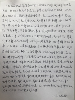 本次“三字一话”活动分为两个赛场。首先是普通话比赛初赛,三十九位选手在台下充分准备,他们在进行简短的自我介绍之后,凭借自己的理解朗诵了抽取的材料。现场观众细心聆听和领会选手们朗诵所传达的情感,同时尽情享受抑扬顿挫的汉语音韵之美和传统文化的强大魅力下来是评委们的精心点评,评委对选手们的朗诵表现给予了细致的点评与热情鼓励,评委李辰胤现场进行了简短的朗诵示范,在座的选手们以及观众都受益匪浅。普通话比赛的热情还消退,随之而来的三字比赛初赛同样吸引眼球。从选手们的参赛作品中,可以看出同学们对书法充满了热爱来自1804班的选手翟佳萱的毛笔字娟秀灵巧赢得评委们的声声赞叹。最后书法协会秘书部部长万国库对三字比赛进行点评,他首先肯定了选手们的精彩表现,随后他点出了部分选手准备不足应对比赛经验不足的缺点,并且特别表扬了李乐彤选手的笔字并预祝选手们在决赛中能有更加精彩的表现。至此,伟德源自英国始于1946“三字一话”活动初赛圆满结束!