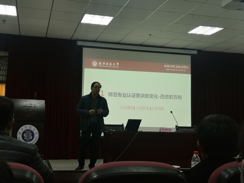 首先,由张胜前教授,以“基于持续改进理念的地理科学师范专业建设案例分析”为题目进行报告,他从师范专业认证的变化、认证复评工作等进行了汇报,为我院师范专业认证提供了借鉴。