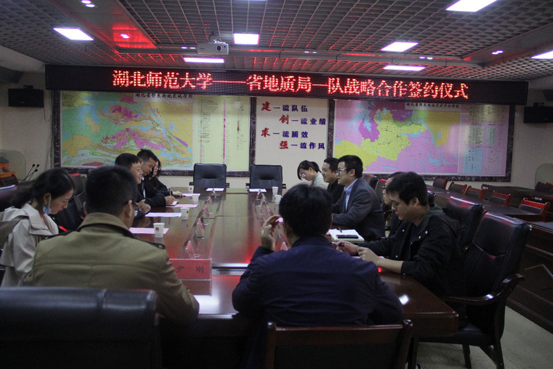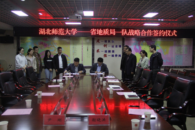 11月14日下午,城环学院院长王湖坤一行赴大冶与湖北省地质局第一地质大队签订战略合作协议。课程与教学论教研室主任吴晓东、博士代表尹刚、丁召静、常珊、熊梓茜,湖北省地质局第一地质大队党委委员、副队长刘冬勤,湖北(黄石)地质博物馆馆长陈前军、实验室主任冯朝军等出席签约仪式并参加座谈会。