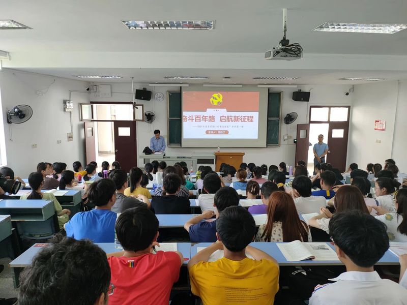 周书记主要从“党的百年奋斗史”、“中国当前发展与未来大势”两个方面展开讲述,并与同学们展开了积极互动,共话百年党史精神瑰宝。首先,周书记阐明了开展党史学习教育的意义、要求以及基本功能,重点强调:“党史是最好的营养剂,它是新时代青年爱国爱党、明智担责、鉴今资政,把党和国家各项事业不断推向前进的必修课,这门功课不仅必修,而且必须修好!”,学习党史就是要从党的发展史中汲取智慧和力量。随后,周书记向同学们提出相关问题,鼓励同学们积极思考,不少同学也就党史学习教育内容踊跃回答、各抒己见,收获周书记的认同与赞赏。然后,周书记着重讲述了开展党史学习教育的重大意义,带领同学们回顾了党的发展历程并剖析了历史上的重大事件,告诉同学们从中获得的经验和启发。同学们都深深被周书记精彩的授课吸引,认真地听讲并做好笔记,同时也在听课的同时进行思考。最后,周书记再次强调开展党史学习教育的重要意义,鼓励同学们要认真学习党史,从党的百年伟大奋斗历程中汲取继续前进的智慧和力量!