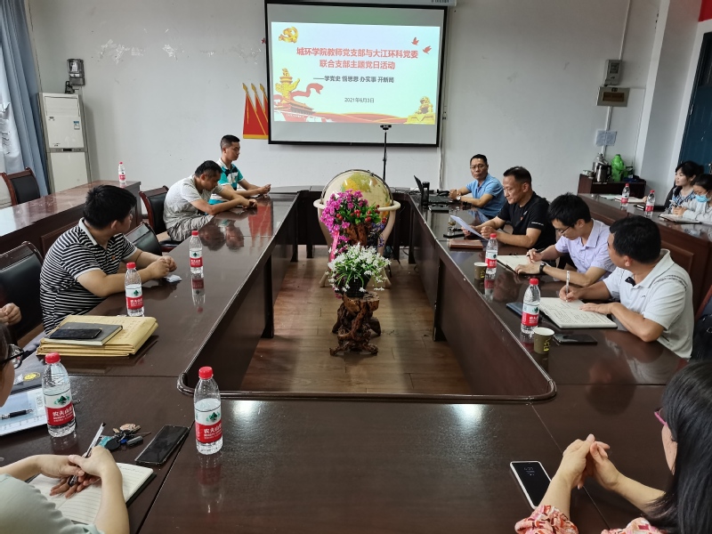为全面贯彻落实省委组织部印发的《关于高等学校、科研院所与非公有制企业开展“携手共建、助力重振”活动方案》精神,充分发挥各级党组织的组织优势,6月3日下午,城环学院教师党支部和结对共建单位湖北大江环科公司党委联合开展的党史学习教育主题党日活动在城环学院会议室举行。
