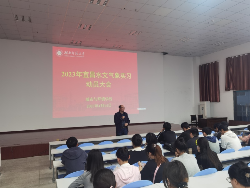 为了进一步增强师范生技能,落实师范生教育实习工作,4月14日晚上,我院在人文楼文都讲堂召开了宜昌水文气象实习动员大会,与会人员有:院党委书记杨应华、副院长葛绪广及2021级全体地理科学专业同学,会议由吴晓东老师主持。