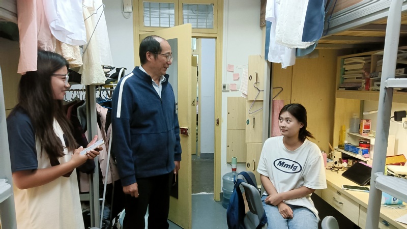 老师们来到学生宿舍,与同学们亲切交谈,询问学生的假期学习、生活情况并嘱咐大家养成良好的生活作息,及时调整状态后续的学习生活中制定合理的学习计划,不断靠近在开学之初自己设立的新目标,取得更好的成绩,以实际行动在校庆之际书写新篇章。对于新生,老师们则教诲他们不仅要养成良好生活习惯,还要保持积极乐观的心态,积极参与校园的文化活动