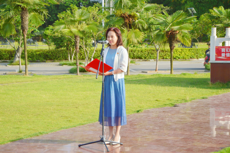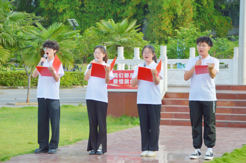 6时50分,国旗班昂首阔步,动作整齐划一,护送国旗入场。庄严的国歌奏起,五星红旗缓缓上升,迎风飘扬,全体师生肃立注目。
