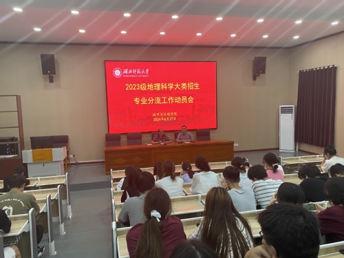 为推进我院2023级地理科学大类分流工作的顺利进行,使学生充分了解各专业特点及发展方向,能够选择适合自己的专业,6月27日下午,我院在艺术设计大楼2J01教室召开2023级地理科学大类分流动员会与专业宣讲会。大会由教学办副主任张明红主持,学院副院长葛绪广、地理信息科学系主任荆现文,2023级地理科学大类全体同学参会。