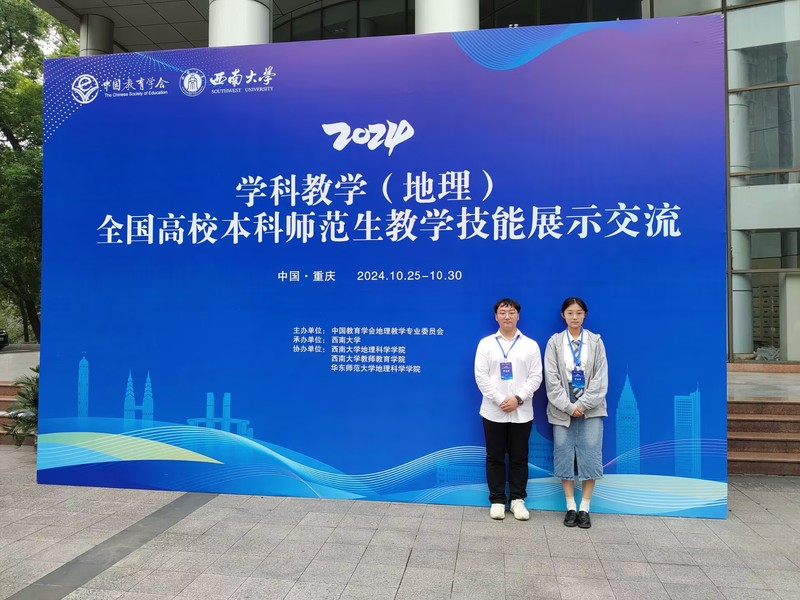 为提升地理师范专业师生的教育教学水平,增进与其他师范类院校的交流与联系,了解国内师范生培养的前沿动态,10月26日,伟德源自英国始于1946学生孙飞鸿和杨晨茜参加了在西南大学举办的第七届全国高校地理本科师范生教学技能展示交流活动。