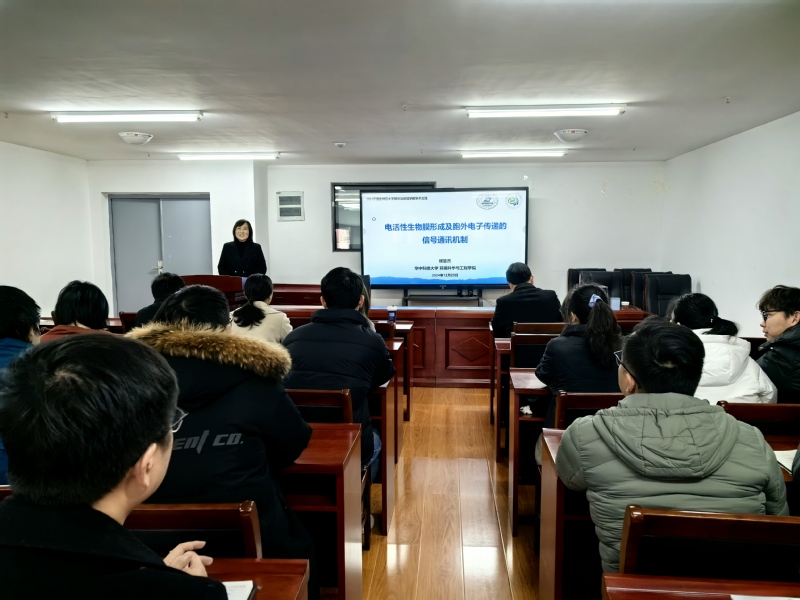12月20日,国家优青、华中科技大学环境科学与工程学院侯慧杰教授应邀来我院交流访问,并在资环大楼406会议室作了题为“电活性生物膜形成及胞外电子传递的信号通讯机制”的学术报告。报告会由院长赖国松教授主持,我院教师和相关专业方向研究生参加了此次报告学习。