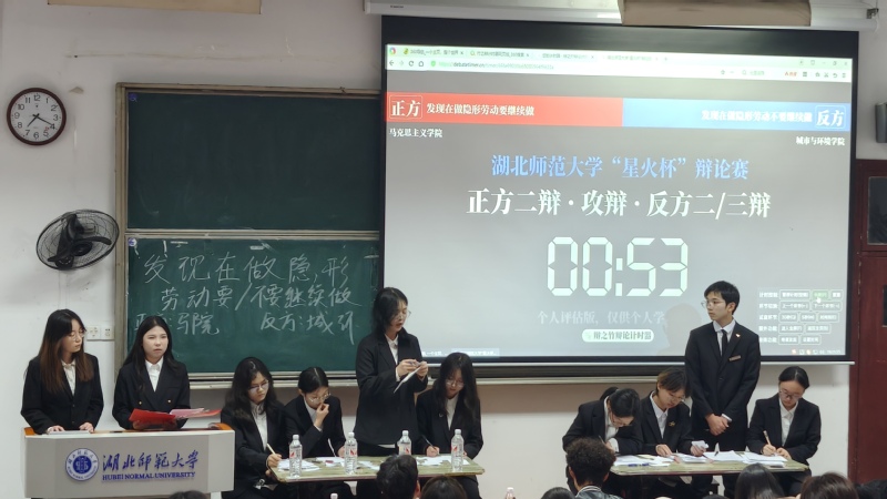 同期,经济管理与法学院和电气工程与自动化学院围绕“能者多劳是对劳动者的肯定还是枷锁”展开辩论,经管法学院胜出,将与城环学院会师决赛。