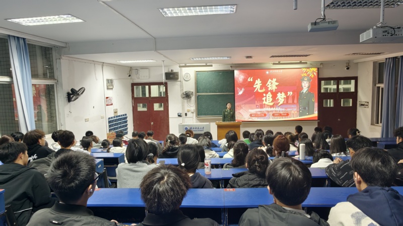 作为一名曾经的火箭军战士,薛新怡同学围绕“扎根大漠,潜心砺剑”的主题,深情回顾了自己从校园奔赴大漠、用青春守护如虹弹道,又重返湖师校园,重新开启学术道路的难忘经历。她为在场同学细致解读了大学生应征入伍的各项优待政策与发展路径,特别分享了在部队的技术培养和成长机会。她呼吁广大同学要厚植家国情怀,勇担时代使命,积极响应号召,把个人理想融入强军事业,以专业知识与过硬本领为“中国梦”“强军梦”注入蓬勃的青春力量。