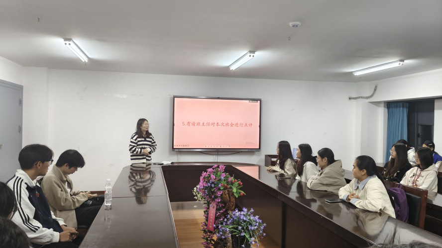 最后,杨新雨老师对本次班会进行全面点评与总结。她针对班级发展中存在的细节问题提出改进建议。她勉励同学们,要始终坚定理想信念、锤炼高尚品格,珍惜大学时光,在集体中成长成才,以实际行动践行社会主义建设者和接班人的使命担当。